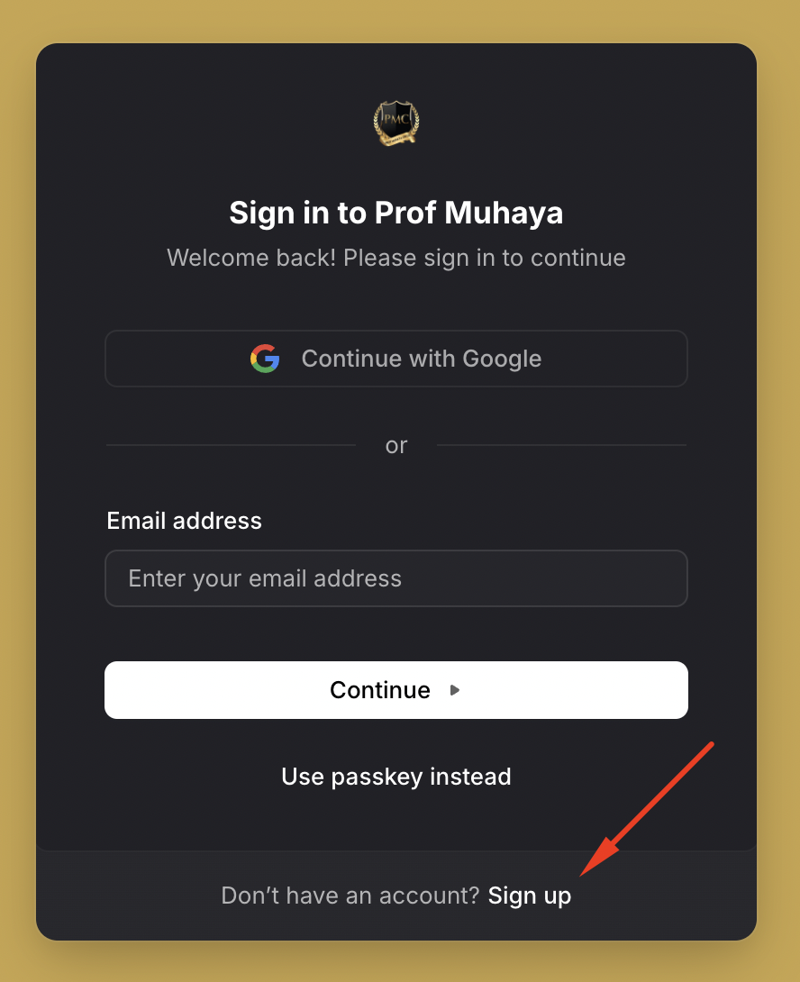 Navigasi ke /sign-in. Lawati pautan https://profmuhaya.com/sign-in atau klik butang Log Masuk di laman utama.