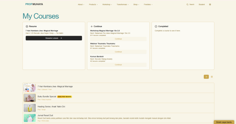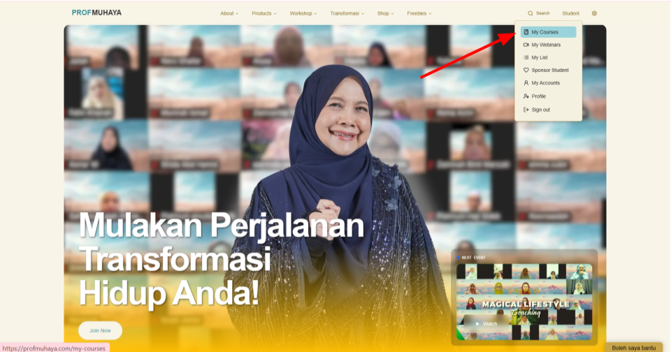Ikuti langkah berikut untuk mengakses kursus yang telah anda daftar: